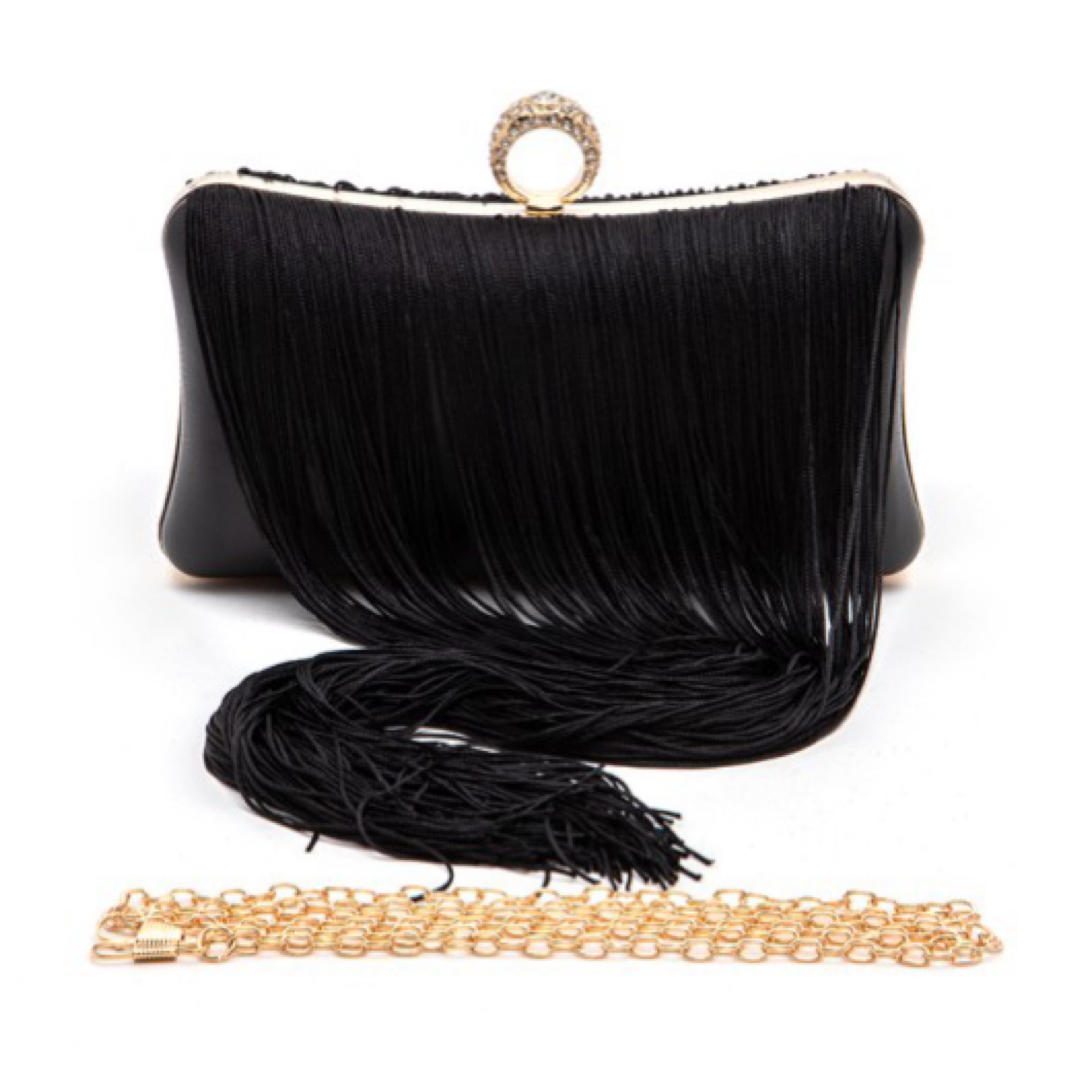 Black Fringe Clutch